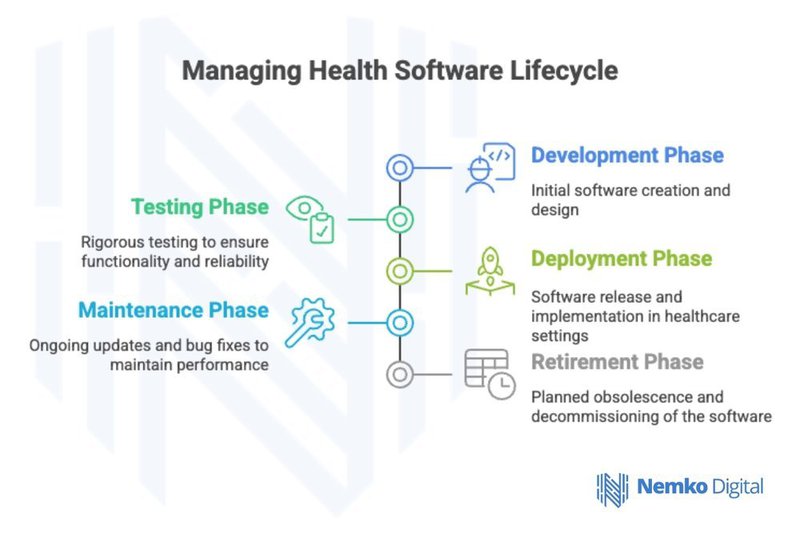 - Planning and Requirements: Establishing clear specifications for health software functionality